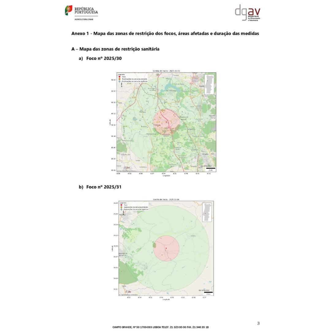 Na sequência deste caso, foram definidas zonas de proteção (3 km) e de vigilância (10 km) em torno do local afetado, de acordo com a legislação em vigor.