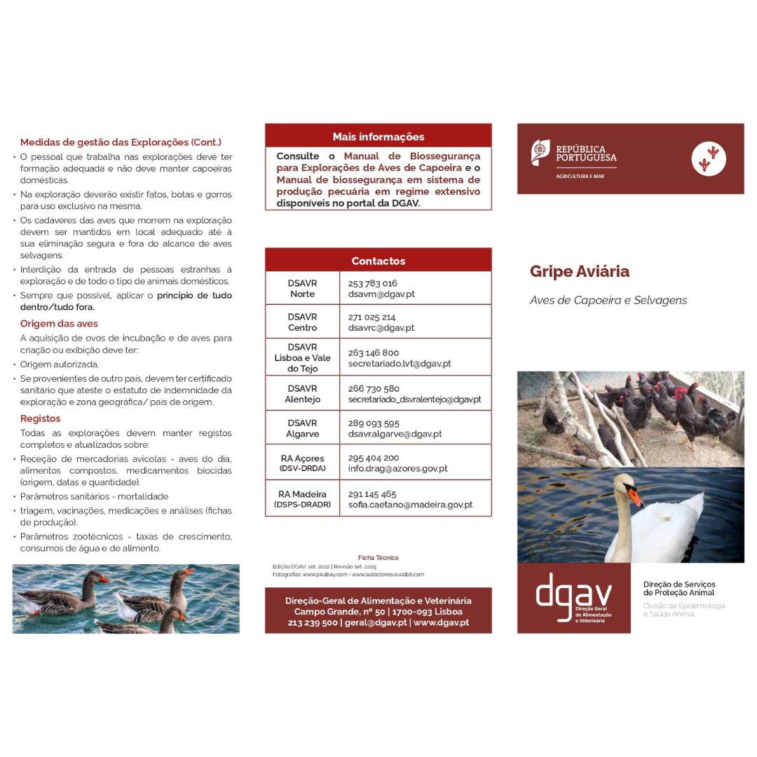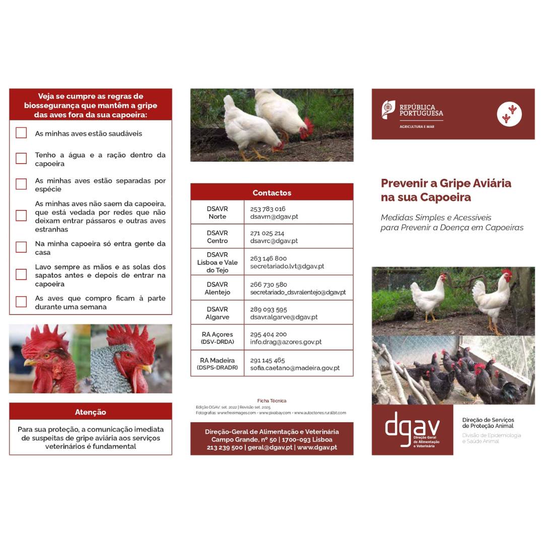 A Direção-Geral de Alimentação e Veterinária (DGAV) e o Município da Chamusca apelam à colaboração ativa de todos os produtores e criadores de aves, para a adoção das recomendações oficiais e na comunicação imediata de qualquer mortalidade anormal de aves às autoridades veterinárias competentes, reforçando o compromisso conjunto na contenção da doença e na proteção da saúde pública e animal.